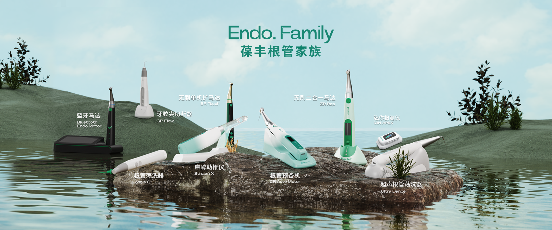 電子產(chǎn)品:根管預(yù)備機(jī);根管測(cè)量?jī)x;根管蕩洗器;熱熔牙膠充填系統(tǒng);無(wú)線便攜式麻醉儀;生物陶瓷治療輔助工具。